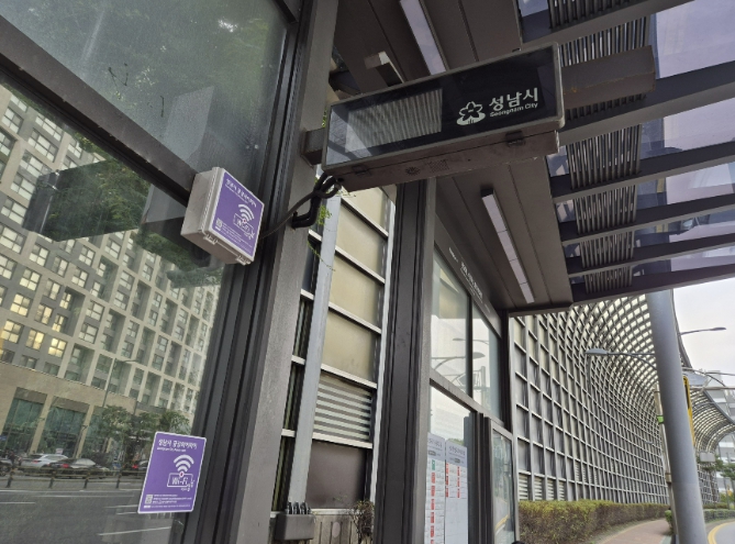 ▲버스정류장에 설치된 성남시 공공와이파이 모습성남시는 올해 상반기까지 공공와이파이를 확대 구축해 총 2294개소, 3721대를 운영할 예정이라고 밝혔다. 이는 경기도 31개 시․군 중 최다 규모로, 시민 중심의 생활밀착형 스마트 인프라 구축 성과를 보여주는 지표다.